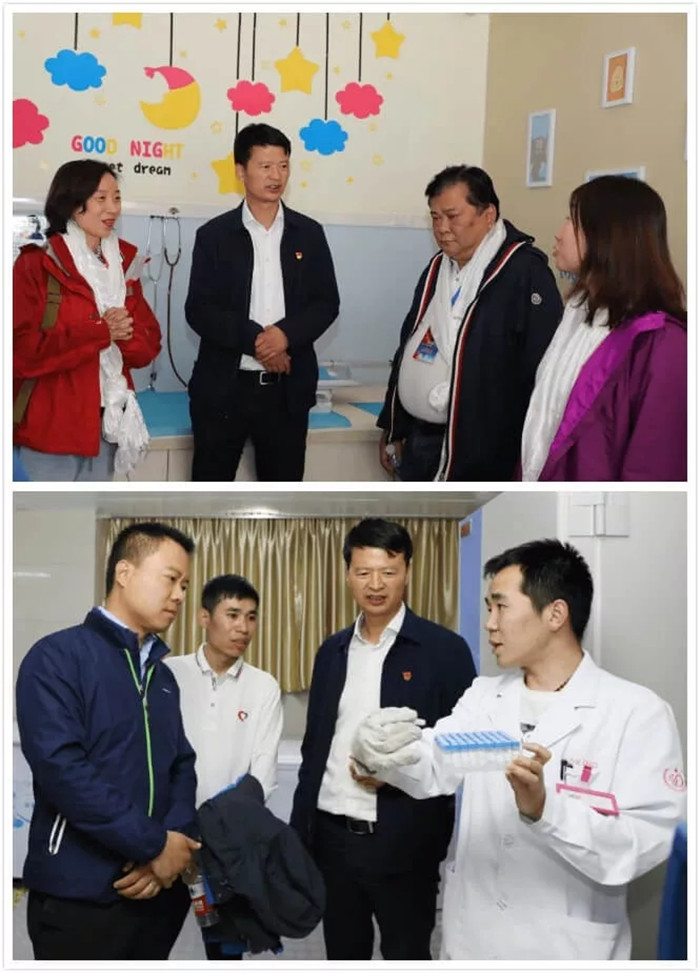 義診期間,中共中央統(tǒng)戰(zhàn)部七局處長(zhǎng)郭鵬與"同心共鑄中國(guó)心”駐西藏秘書長(zhǎng)趙士磊來(lái)到了阜康婦產(chǎn)兒童醫(yī)院詳細(xì)查看了正在井然有序進(jìn)行的義診現(xiàn)場(chǎng),在王斌董事長(zhǎng)陪同下參觀阜康婦產(chǎn)兒童醫(yī)院院區(qū),聽(tīng)取并查看了我院人類輔助生殖醫(yī)學(xué)中心等特色科室的開(kāi)展情況。