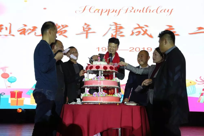 阜康二十周歲生日即將來臨,值此盛典,阜康二十年老員工和各位領(lǐng)導(dǎo)一起切蛋糕、與全體員工共同舉杯,共同祝愿"百年阜康”!