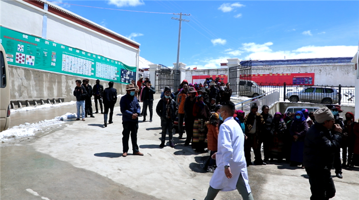 嘉黎縣夏瑪鄉(xiāng)鄉(xiāng)長李智安、鄉(xiāng)衛(wèi)生院院長東知塵措帶領(lǐng)全院醫(yī)護(hù)人員和數(shù)百名當(dāng)?shù)厝罕娫缭缬蛟谛l(wèi)生院內(nèi),為遠(yuǎn)道而來的我們獻(xiàn)上了潔白的哈達(dá)。
