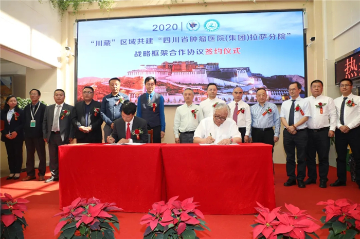 四川省腫瘤醫(yī)院黨委書記郎錦義,西藏阜康醫(yī)療股份有限公司黨委書記、董事長(zhǎng)王斌代表雙方共同簽署《川藏區(qū)域共建四川省腫瘤醫(yī)院(集團(tuán))拉薩分院戰(zhàn)略框架合作協(xié)議》,隨后郎錦義書記向王斌董事長(zhǎng)進(jìn)行了授牌。