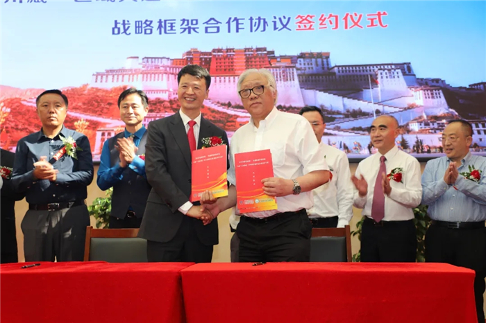活動(dòng)接下來(lái)舉行了揭牌和簽約儀式。自治區(qū)政協(xié)副主席、自治區(qū)工商聯(lián)主席、總商會(huì)會(huì)長(zhǎng)阿沛·晉源和拉薩城市建設(shè)投資公司黨委書記、董事長(zhǎng)多吉旺久共同為西藏康城腫瘤醫(yī)院揭牌。