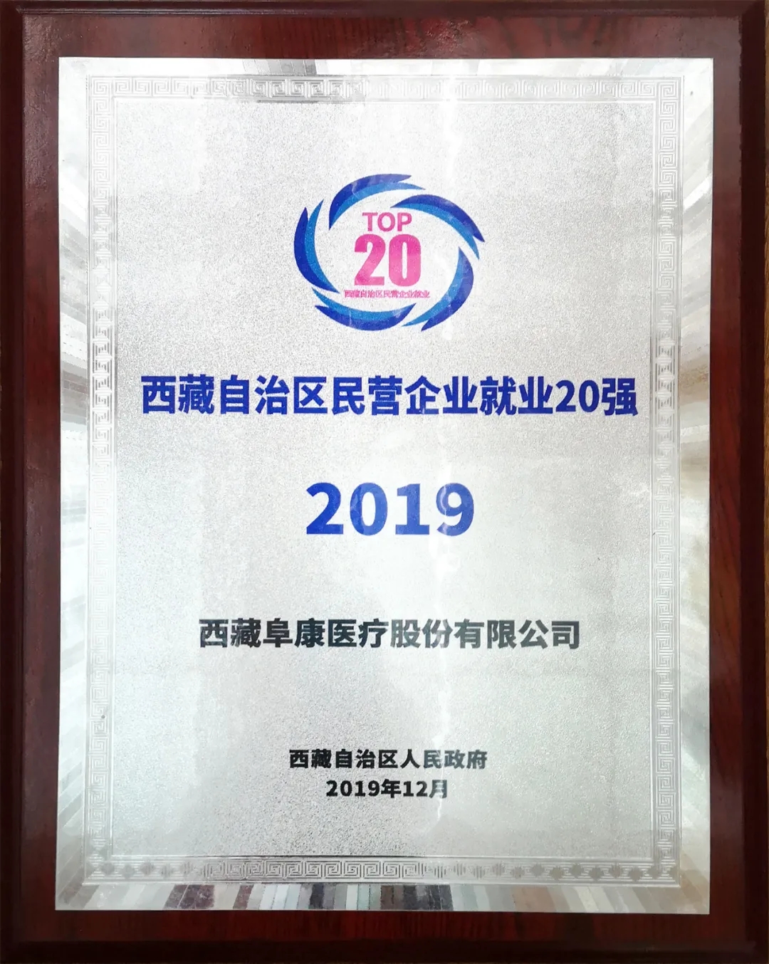 12月10日,西藏自治區(qū)工商聯(總商會)召開六屆四次常委會議。西藏阜康醫(yī)療股份有限公司被授予"2019西藏自治區(qū)民營企業(yè)就業(yè)20強”榮譽稱號。