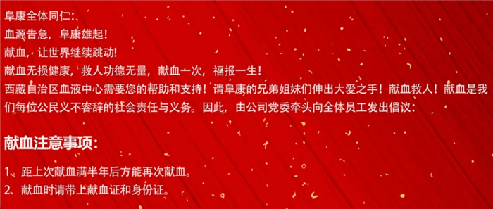 在中國(guó)共產(chǎn)黨成立100周年、即將迎來(lái)自治區(qū)和平解放70周年慶典之際,為解決自治區(qū)血液中心臨床用血緊張現(xiàn)狀,西藏阜康醫(yī)療股份有限公司黨委近日積極組織員工無(wú)償獻(xiàn)血,有效緩解了全區(qū)臨床用血緊張局面。