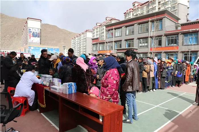 3月5日,西藏阜康醫(yī)療股份有限公司黨委志愿義診組來到拉薩市經(jīng)開區(qū)德吉康薩社區(qū),為一千多名農(nóng)牧區(qū)搬遷群眾進(jìn)行義診,并捐贈了價(jià)值一萬多元的藥品。