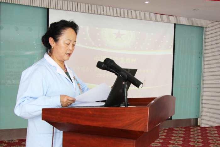 之后,敖德秀同志又帶領(lǐng)全體黨員、預(yù)備黨員、積極分子逐字逐句溫習(xí)黨章和黨誓,并舉行了做合格共產(chǎn)黨員,亮證掛牌活動(dòng)儀式。